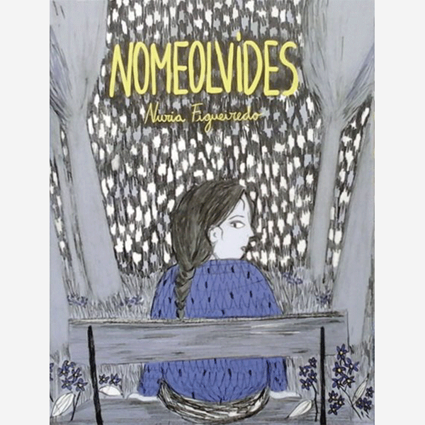 Texto de la editorial: Camelia no sabe qué hacer con su vida y se muda a vivir con su abuela Malvina, una mujer muy especial que parece estar esperando algo. Mientras se adaptan a su nueva vida juntas, aparece en el pueblo un misterioso joven. Nomeolvides es el primer cómic de su autora, Nuria Figueiredo, con un dibujo a lápiz, nos cuenta una historia sobre el amor y la espera, rodeada de flores y cargada de misterio.