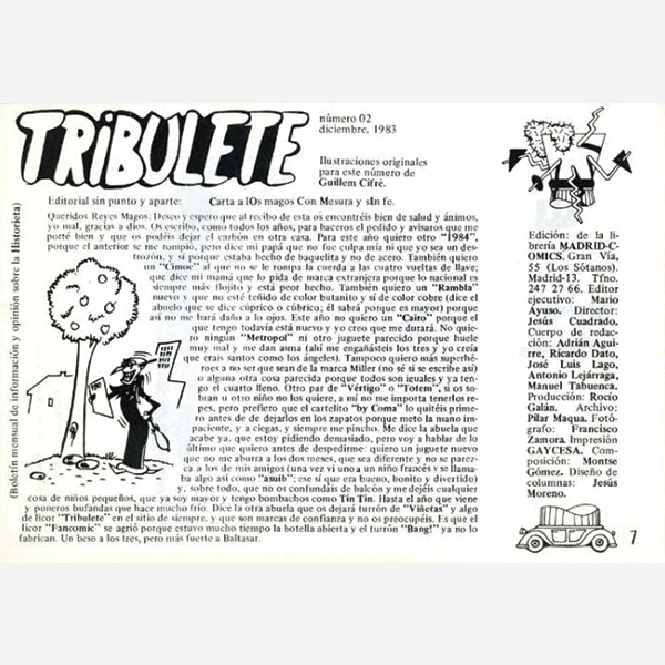 La numeración es rara pero típica de Jesús Cuadrado. Comienza con el #07 y ca en disminución hasta el #00-0, donde comienza la cuenta al alza hasta llegar al 7 y último. Como rareza, el #01 es, simplemente, una felicitación de Navidad.